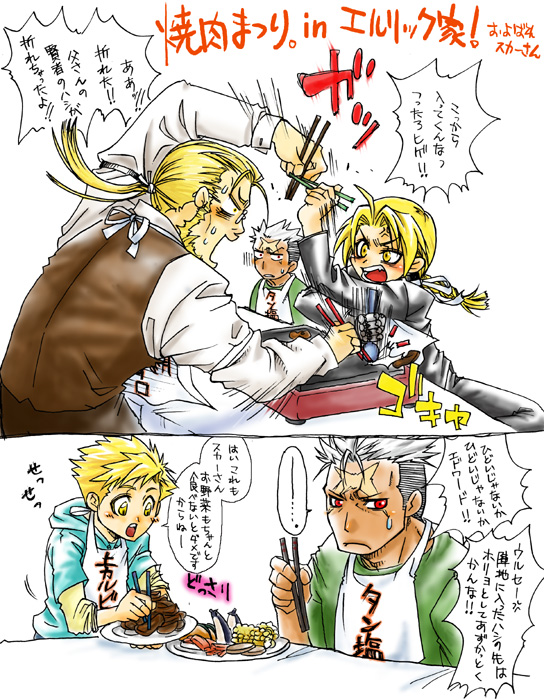 こんばんは、騎青です。ゴフリっ!!↑は鰤チの別冊(?)『カラ鰤』の中からのパロ。 あんまり過ぎてパクらずにはいられませんでした・・・・・・ゲヘ。 エルリック家の焼肉祭にご招待(ていのイイ拉致)されたスカーたん。みてえな。 父と長男が醜い争いの中、アルスカはいい雰囲気になればイイヨ!! 『カラ鰤』はその名に反して半分以上モノクロだヨ!!ショッキングだネ!!とか思わず口調がマユリ様になってしまいます。マユリ様や狛村、普段登場しないキャラが多くて楽しい内容ではあるがネ。 あ、でも今週のジャソプにマユリ様が登場しましたね、恐ろしくパワーUPして!!! 卯の花隊長の活躍にも期待大!!何気に攻撃力が隊長格でトップクラスですよ!? 今鰤チがおもろいです。大ネル&小ネルも好ーきーなーんーでーすー ジャンピ感想か・・・・・ 今日は出勤だったのですが(怒) 仕事の状況で間に合わないなら仕方ない・・・・ しかし今日は部長の下らない見栄の為に全員休日出勤する羽目に・・・・・・・・・・・ スゴイ!!憎い!!!ギギギギ・・・・・ もう、マユリ様に改造されてしまえばイイヨ、あんなヤツはァーーーー!! 拍手&米、メル本当に有難う御座います!!生きる糧で御座います!! PR Comments